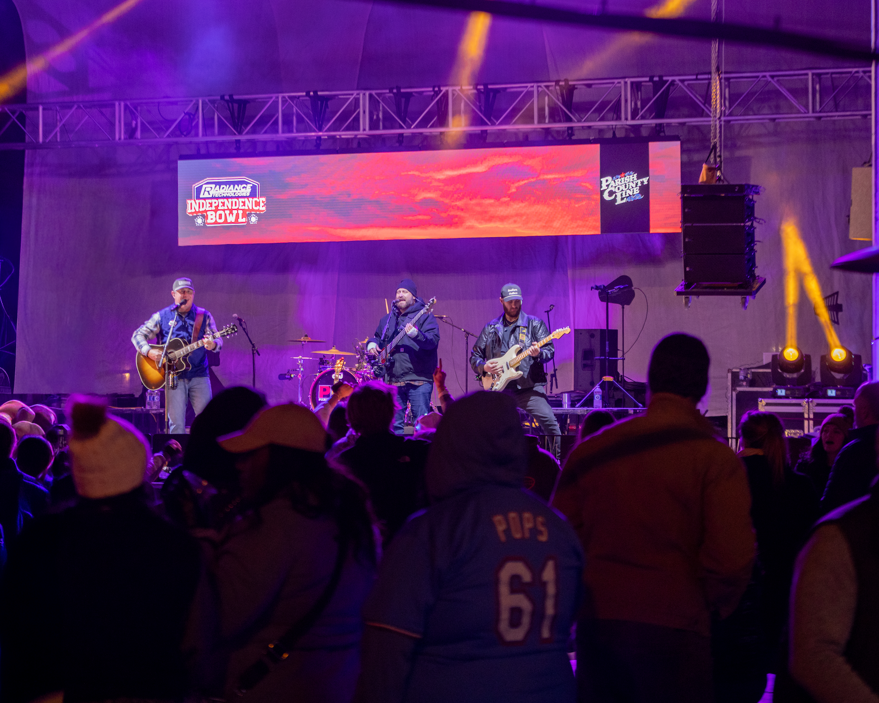 The Rally on the Red, presented by Heard, McElroy & Vestal, Live! Casino & Hotel Louisiana, Orr Luxury Brands of Shreveport, Xfinity and Cumulus Media, gets local and traveling Independence Bowl fans ready for game day with four free events for fans of all ages the night before the game. The Mardi Gras Preview Parade begins the night at 6:30 p.m. – flowing through the Louisiana Boardwalk and East Bank District. Following the parade’s conclusion, the two school marching bands play in a Battle of the Bands at 7:15 p.m. in the East Bank District Plaza. After the two bands duke it out, there is a fireworks show at 7:45 p.m. Culminating the night at 8 p.m. is a free concert from Parish County Line in Hurricane Alley in the East Bank District!